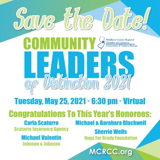 Tuesday, May 25 at 6:30 PM Join the Middlesex County Regional Chamber of Commerce on Tuesday, May 25th for its annual Community Leaders of Distinction at 6:30 PM. The Community…