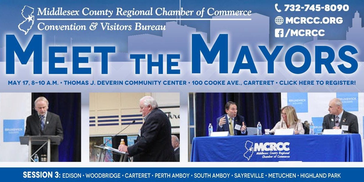 Here’s your chance to get to know your mayors as the Chamber continues a four-part series of “Meet The Mayors,” Friday, May 17 from 8-10 a.m. at Thomas J. Deverin Community Center, 100 Cooke Ave., Carteret.