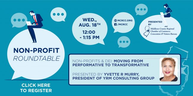 The Middlesex County Regional Chamber of Commerce Presents “Non-Profits & DEI: Moving from Performative to Transformative” as part of the Chamber’s Non-Profit RoundTable Series on Wednesday, August 18th, 12 PM.…