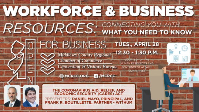 The Middlesex County Regional Chamber of Commerce Presents “The Coronavirus Aid, Relief, and Economic Security (CARES) Act” as part of the Chamber’s Workforce and Business Resources Series: Connecting You With…