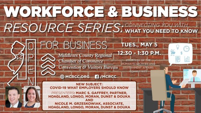 The Middlesex County Regional Chamber of Commerce Presents “COVID-19- What Employers Should Know” as part of the Chamber’s Workforce and Business Resources Series: Connecting You With What You Need to…