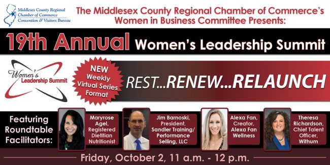 The Middlesex County Regional Chamber of Commerce’s Women in Business committee presents the 19th Annual Women’s Leadership Summit. This year’s Virtual Summit features a new weekly format. The theme for…