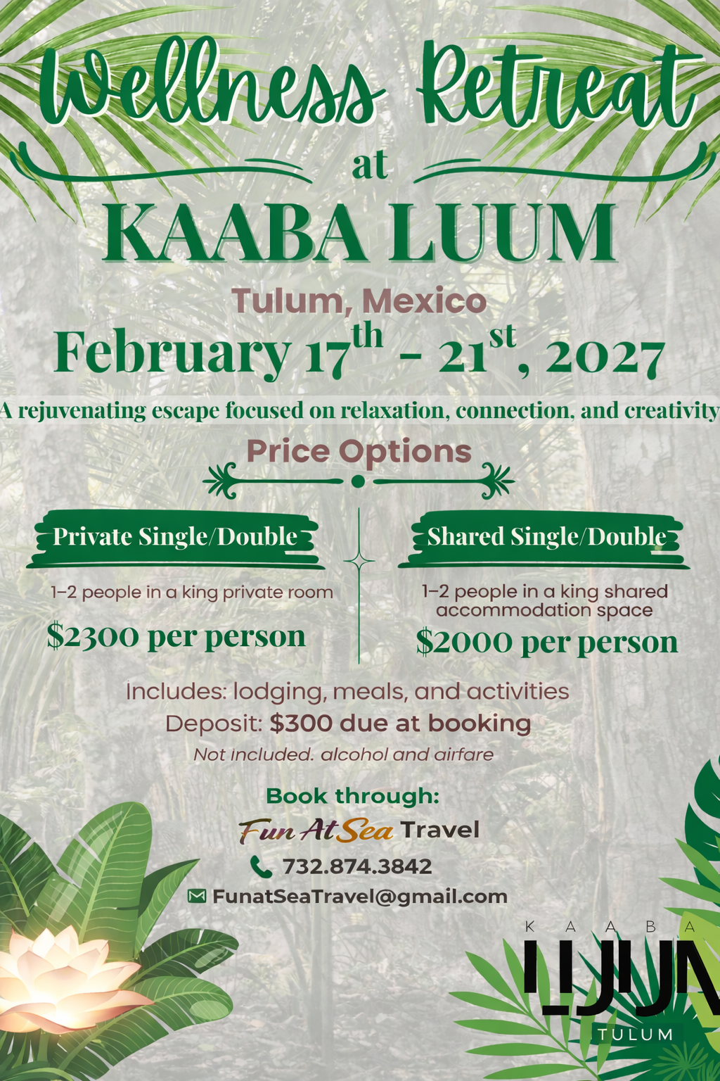 - Support A Local Business – Wellness Retreat at Kaaba Luum: Book through Fun At Sea Travel to Enjoy Tulum, Mexico…Click Here For Details